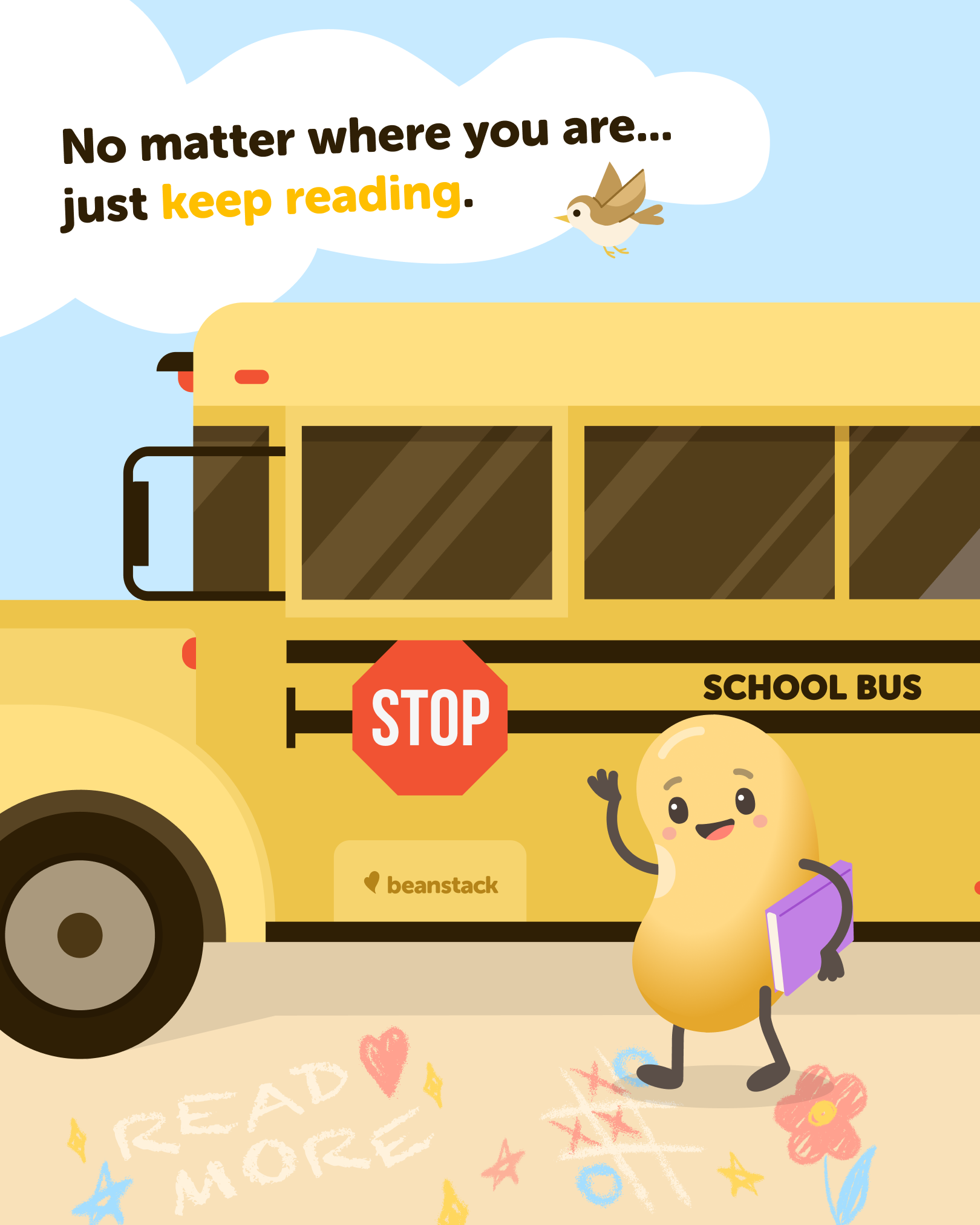 Bring Benny the Bean to your social channels and inspire students to read anywhere with these social media assets of Benny reading at the bus stop.